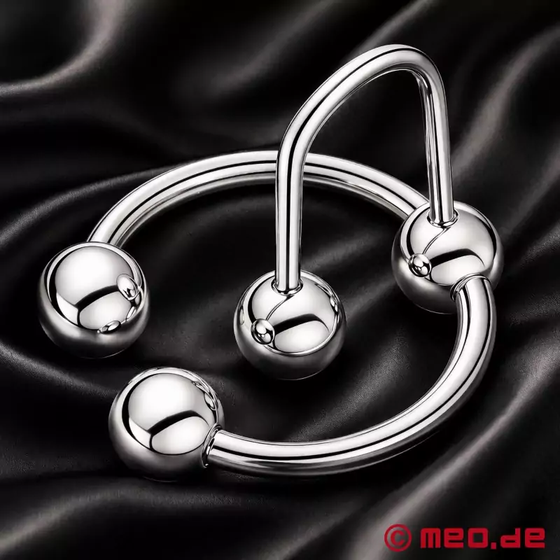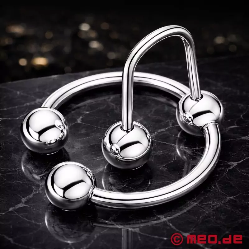La bola de acero inoxidable de 8 mm se ajusta perfectamente y proporciona una estimulación intensa que te volverá loco, especialmente en el momento del clímax. El anillo para el glande refuerza tu erección y el arco de forma especial estimula tu frenillo con precisión milimétrica. Ya sea para masturbarte, bajo la supervisión de tu pareja dominante o como un eficaz sextoy para el edging, este anillo para el glande de MEO® es el accesorio BDSM que siempre has deseado.