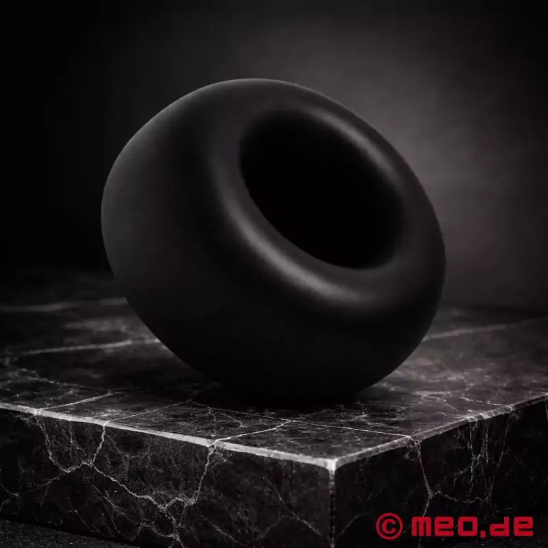 Para desarrollar SkaterBoyz™, MEO® se inspiró en la forma ancha y maciza de una rueda de monopatín. El resultado es un ballstretcher de silicona con una estética clara y depurada, y con un efecto intensamente perceptible. El anillo se coloca directamente por encima de los testículos, alrededor del escroto, y gracias a su reducido diámetro interior queda extraordinariamente ajustado en reposo. Así se genera una fuerte dilatación que alarga el escroto y hace que los testículos queden por debajo con un aspecto especialmente lleno y marcado.