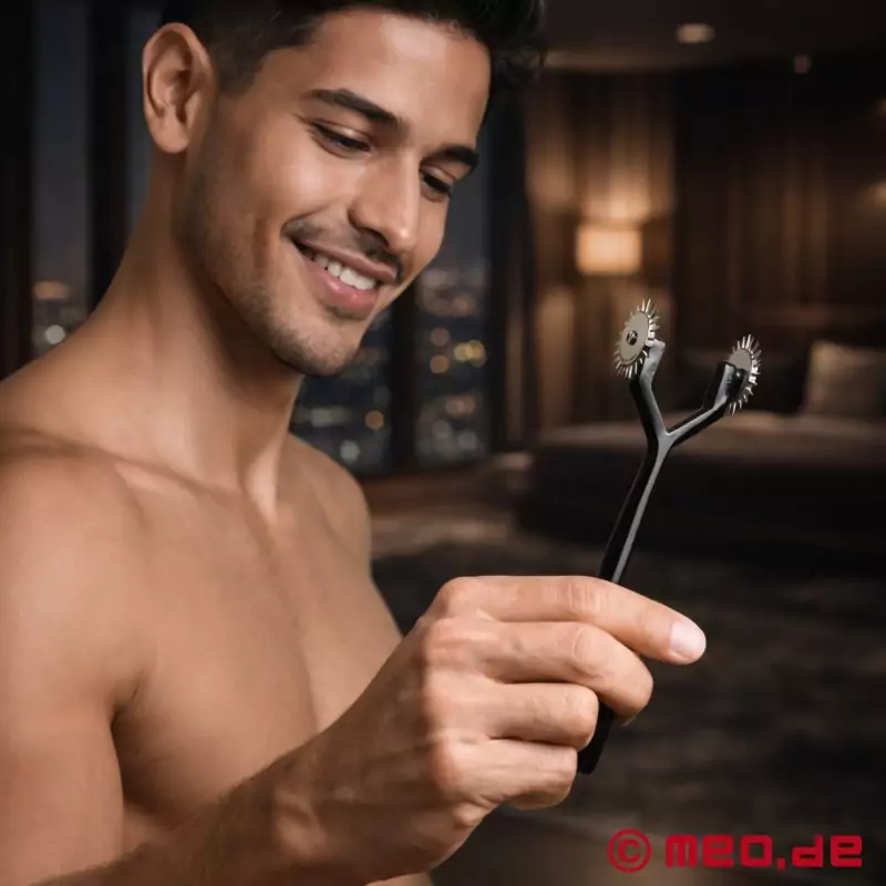 Experimenta con los distintos niveles de placer y dolor variando la presión. Deja que la rueda Wartenberg se deslice ligeramente sobre la piel para obtener una ligera sensación de hormigueo. También puedes presionar un poco más fuerte para obtener una sensación de hormigueo más directa e intensa.