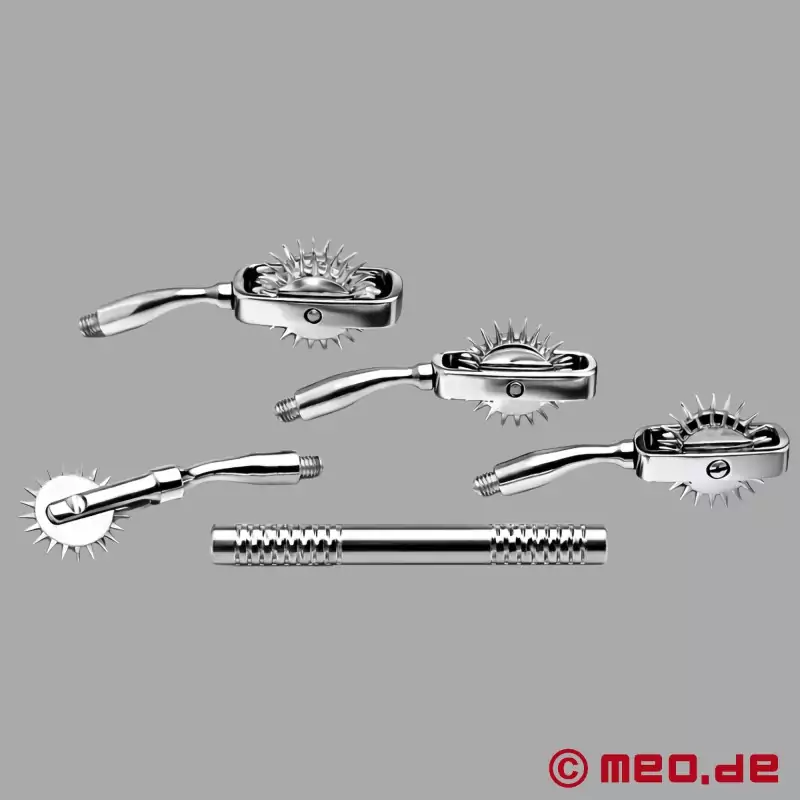 ¿Eres un auténtico amante de los molinetes y te gusta el dolor que puede provocar una rueda de Wartenberg? Entonces este conjunto de ruedas de Wartenberg para sesiones BDSM profesionales es imprescindible para ti