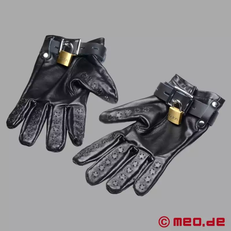 Guantes de cuero con spikes y cierre con candado de Dr. Sado®
