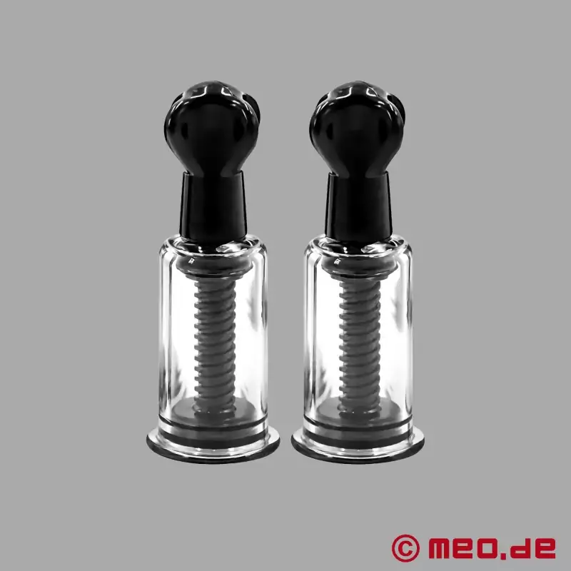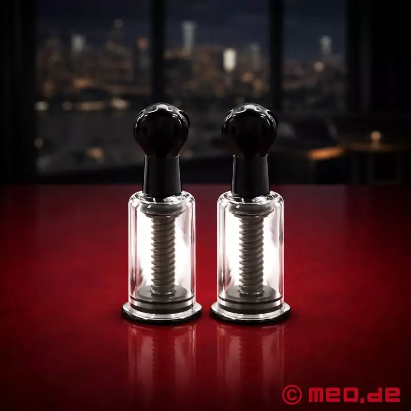 Con los innovadores succionadores de pezones TWIST'N SUCK, la presión de succión sobre los pezones puede aumentarse suavemente poco a poco. Cuanto más giras la rueda de tornillo integrada, más fuerte succionan los succionadores de pezones, lo que resulta sencillamente fantástico. Con los succionadores de pezones TWIST'N SUCK, tus pezones estarán intensamente irrigados de sangre, agrandados y especialmente sensibles.