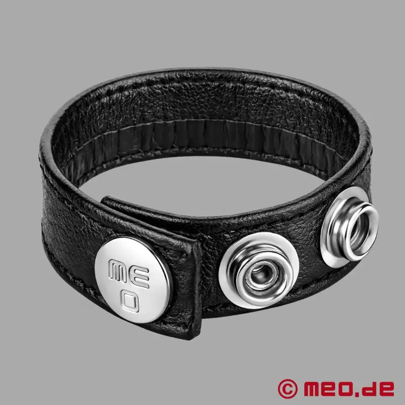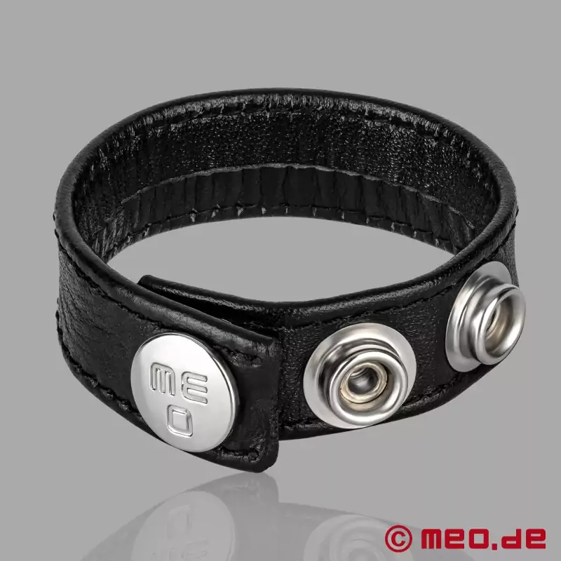 Ajuste cómodo, diseño clásico y manejo sencillo. Gracias a su cierre de botones a presión, este cockring de cuero negro se ajusta con precisión al tamaño deseado y queda perfectamente colocado. El color negro se asocia tradicionalmente con sexo duro, en particular con BDSM.