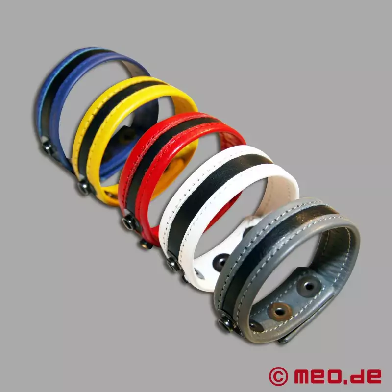Este cockring bicolor está hecho a mano y se basa en el «Hanky Code» clásico. El color gris se asocia tradicionalmente con la preferencia por el «bondage».