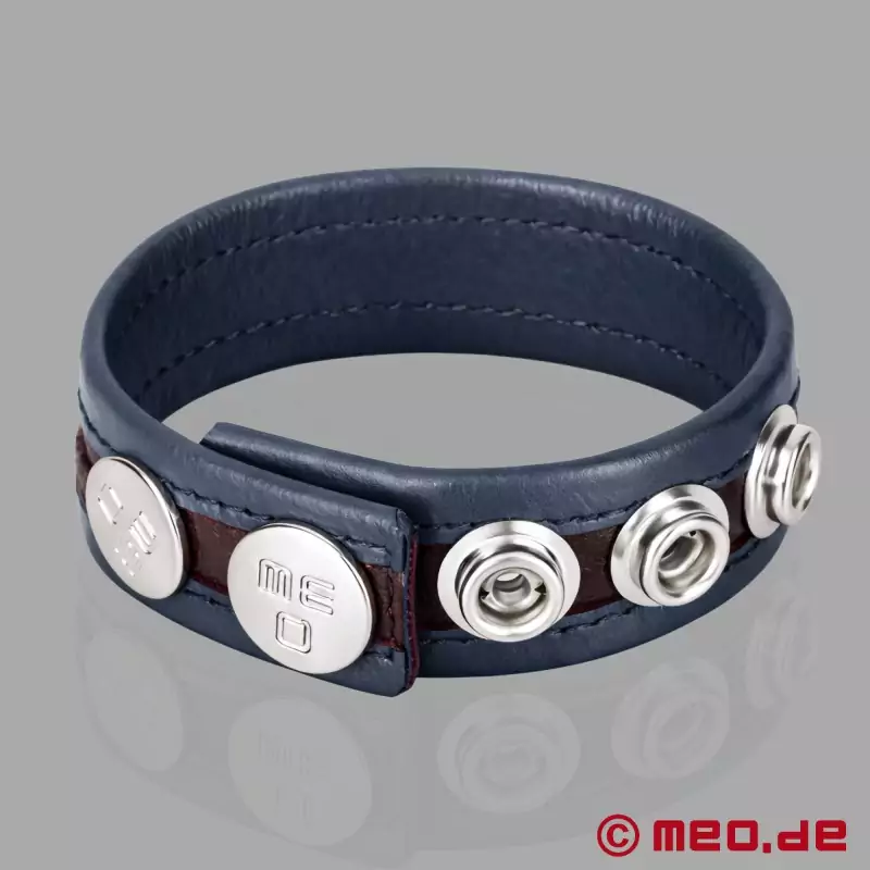 Ajuste cómodo, diseño clásico y manejo sencillo. Gracias a su cierre de botones a presión, este cockring de cuero negro y gris se ajusta con precisión al tamaño deseado y queda perfectamente colocado.
