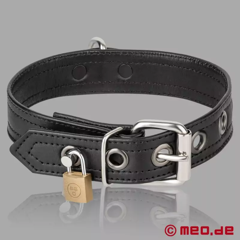 El collar BDSM está equipado con una anilla en D y puede cerrarse de forma segura con el candado de cierre idéntico de MEO® que se incluye. Esto refuerza aún más el componente de control, por lo que es ideal para sesiones intensas de bondage y juegos de rol en torno a la dominación y la sumisión.
