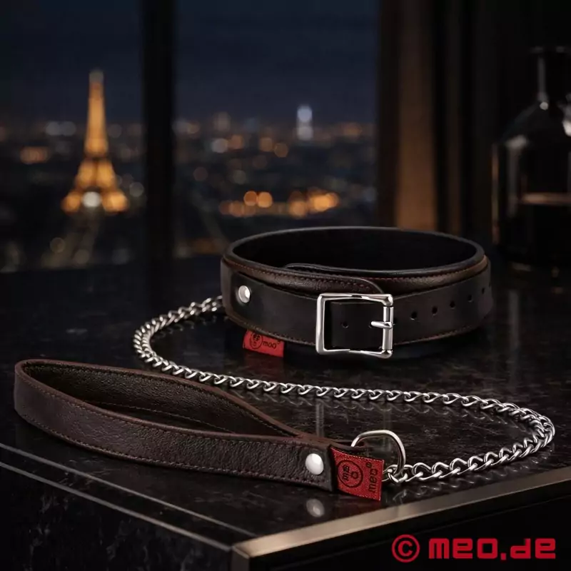 Llevar este accesorio bondage imprescindible, hecho de auténtica piel de cabra especialmente suave, ¡es puro placer! Gracias a su diseño atemporal y elegante y a su alta calidad, dará a tu sesión BDSM un aspecto sofisticado. El collar bondage ofrece una comodidad fantástica gracias a su suave forro. Se puede ajustar de forma óptima a la circunferencia del cuello mediante la hebilla. La correa de 90 cm de longitud está equipada con una cómoda correa de mano de cuero de alta calidad y está unida a una cadena. Con este elegante accesorio bondage, tu pareja puede sentir exactamente quién manda en vuestra relación y quién lleva la voz cantante. La anilla en D, compatible con la mayoría de cadenas, cuerdas y restricciones BDSM, facilita la colocación de la correa mediante un mosquetón. La combinación de fina piel de cabra marrón oscuro y terciopelo especialmente suave crea un contraste estético entre rigor y ternura.