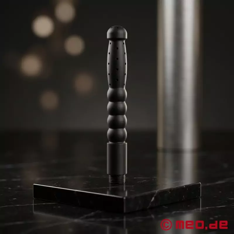 Para un enjuague anal especialmente completo antes del sexo anal, te recomendamos nuestra ducha anal de lujo "Pantera Negra™" para la higiene íntima. La ducha anal "Pantera Negra™" es una práctica alcachofa de ducha que puede acoplarse rápidamente a cualquier manguera de ducha convencional.