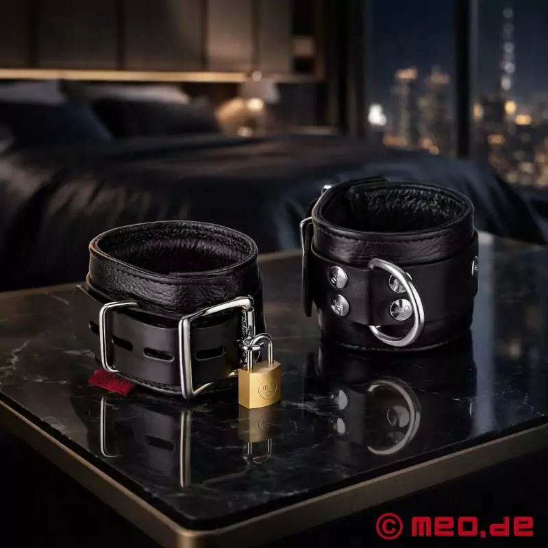 Nuestra búsqueda de la perfección nos ha inspirado para ofrecer nuestras ataduras de cuero más populares en una versión con cierre. Fabricados con la extraordinaria calidad MEO® a partir de la mejor piel de vaca granulada, acolchados, con cierre y ajustables en tamaño. Perfectas para largas sesiones de bondage.