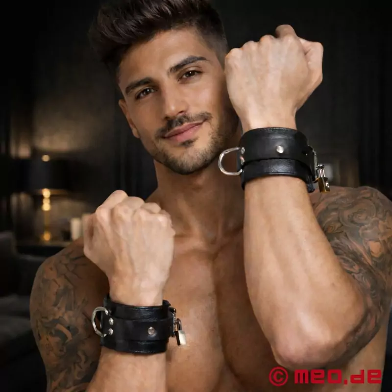 Nuestra elaboración confiere al cuero un tacto agradable y una superficie cálida. El cuero MEO® de curtido vegetal es especialmente fino y resistente. El carácter del cuero se mantiene en nuestras esposas y las irregularidades y cicatrices naturales no se disimulan artificialmente. Nuestras esposas se sujetan firmemente con correas remachadas. Una sólida hebilla de metal especial ofrece una opción de cierre adicional con nuestros candados de seguridad a juego. Los candados suministrados, incluida la opción de nuestro revolucionario candado digital de tiempo para Self Bondage MEOBOND, garantizan que sea imposible una fuga no autorizada.