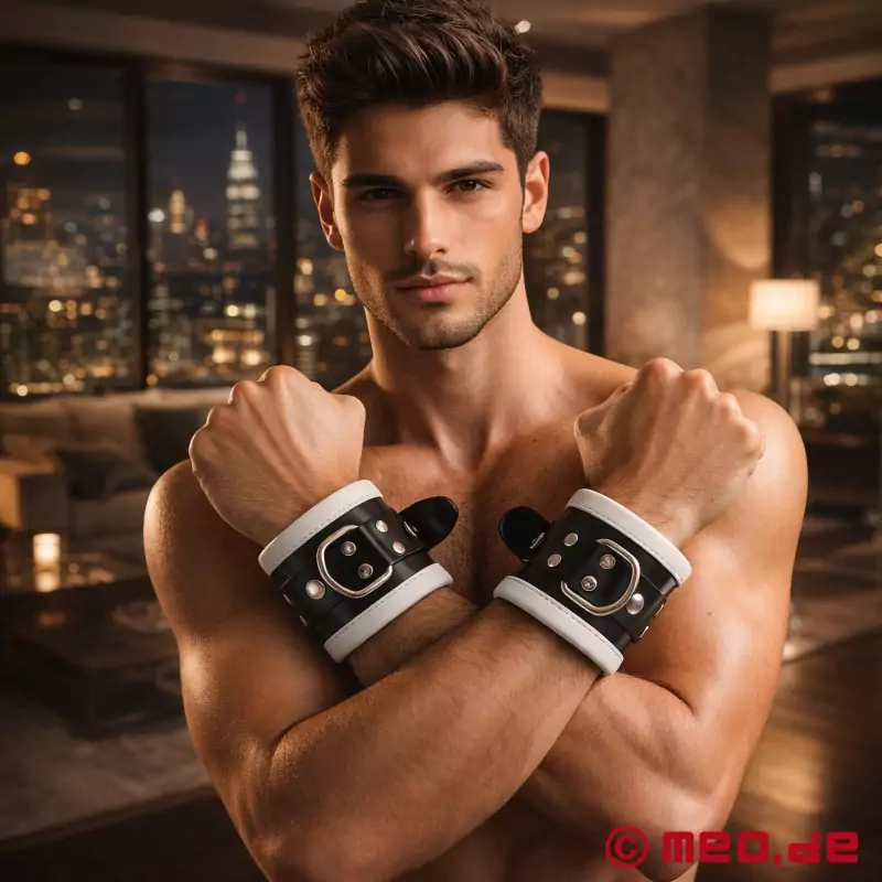Si solo te conformas con lo mejor, las elegantes esposas de cuero blanco y negro de la exclusiva colección Distinct™ de MEO® son perfectas para ti. Estas esposas acolchadas destacan por su máxima calidad, comodidad y seguridad, ideales para experiencias de bondage exigentes y elegantes. Su diseño atemporal en blanco y negro es sinónimo de dominio sutil y devoción absoluta.