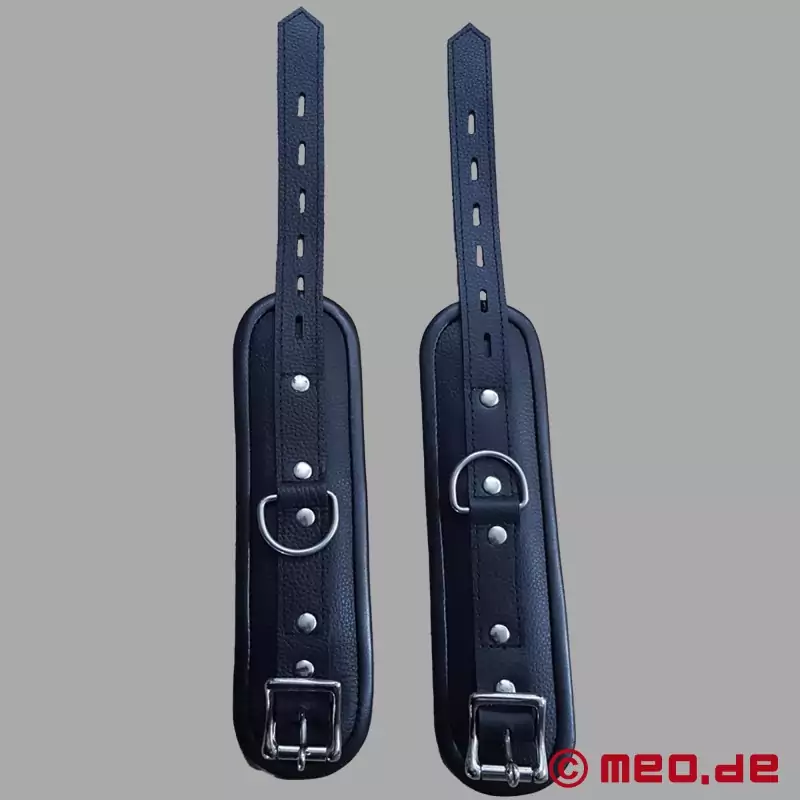 Con las esposas de MEO ® no sólo estarás en el lado seguro, sino que también podrás disfrutar al 100% de la restricción BDSM con tu pareja. Al comprar esposas, debes asegurarte de que las esposas que elijas te queden bien y sean ajustables individualmente en tamaño Esto aumenta la comodidad de uso y te garantiza años de placer. El material de las esposas debe ser resistente y duradero, como el cuero de alta calidad que utilizamos. Para asegurarte de que sigues de buen humor incluso después del bondage, también debes seguir nuestras instrucciones de cuidado, que naturalmente incluimos con cada par de esposas.