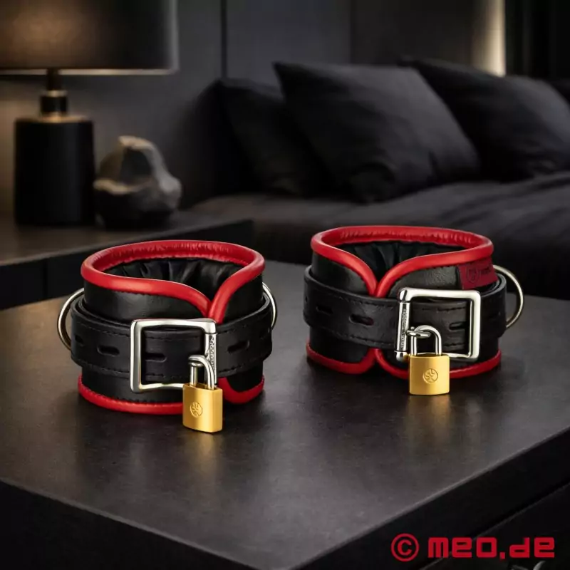Para las esposas hechas a mano de la colección Amsterdam Bondage de MEO ® sólo se utiliza piel de vaca seleccionada, lo que hace que las esposas sean especialmente resistentes y garantiza que sean muy cómodas de llevar durante el bondage.