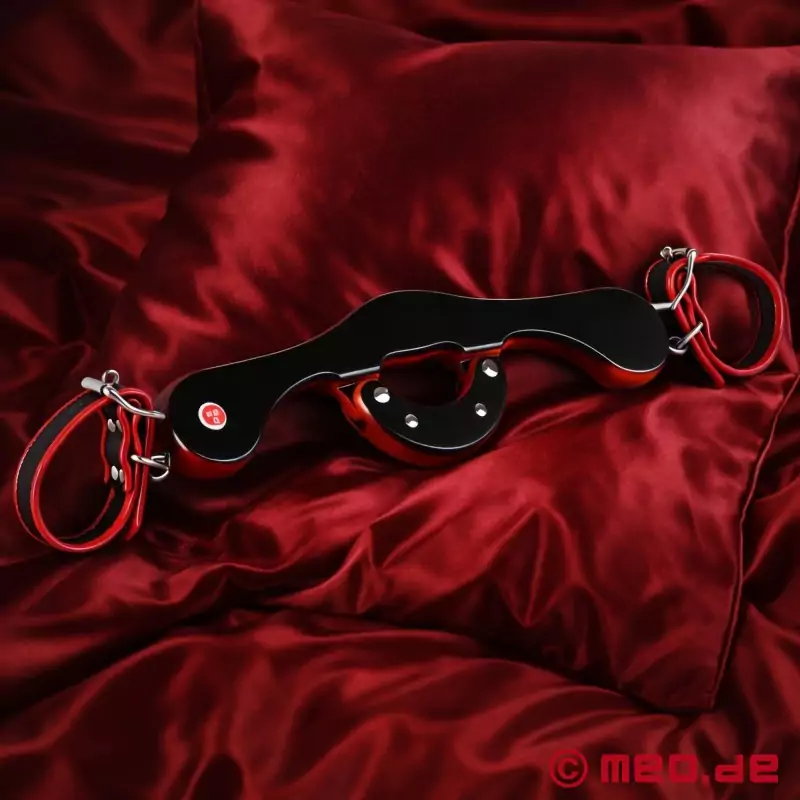 El Humbler 3.0 suele fijarse detrás de los muslos del hombre, manteniendo las piernas en posición flexionada. Esto impide que se ponga de pie y adopte una postura erguida, e impone una postura controlada y sumisa. En la nueva versión con esposas de cuero sujetas a los lados, la libertad de movimiento se restringe aún más, ya que también se pueden inmovilizar las manos. Esto refuerza la sensación de sumisión e indefensión de la pareja sumisa. En cuanto se coloca el Humbler 3.0, el escroto se estira automáticamente y el pene se tensa. Las nalgas y los testículos están ahora preparados para una estimulación intensiva o "tratamiento" por parte de la pareja. Ser utilizado analmente por tu pareja en esta posición, tal vez incluso con un consolador con correa, es sencillamente sensacional.
