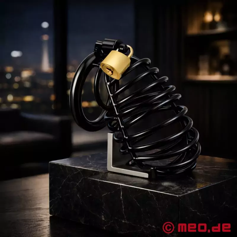 Eficaz cinturón de castidad para hombres, porque el diseño totalmente metálico a prueba de roturas de MEO no deja nada que desear en cuanto a mantener casto al hombre sumiso. Cada modelo individual de NoPacha® se adapta perfectamente a los genitales masculinos y su sólido diseño de acero de alta resistencia garantiza que el hombre se mantenga casto. El dispositivo de castidad, con bisagras y completamente bloqueable, está fabricado con una aleación de acero de alta resistencia y las superficies también están recubiertas de negro. Esto no sólo crea un aspecto especialmente atractivo, sino también una superficie resistente a la mayoría de los líquidos.