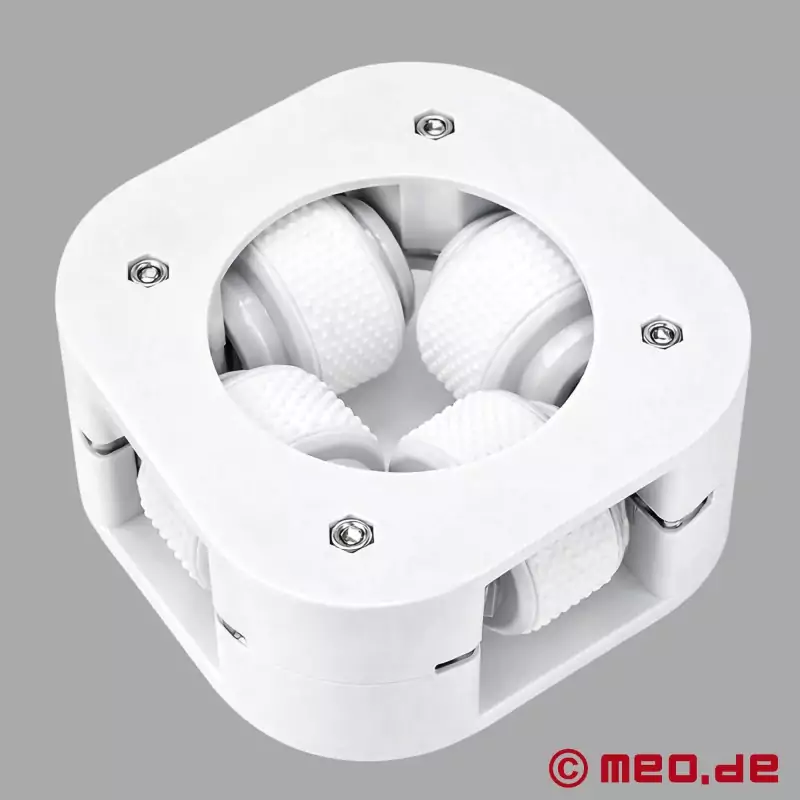 Die Konstruktion dieses Massagegeräts ist auf breite Penismaße ausgelegt. Interessant ist es, dass vier leicht profilierte Druckrollen des erigierten Penis in die "Zange nehmen". Dazu sind sie schwenkbar gelagert, so dass sie immer an zu massierenden Objekt anliegen. Insgesamt sieht dieses Massagegerät sehr technisch aus, erfüllt aber seine Aufgabe wirksam.