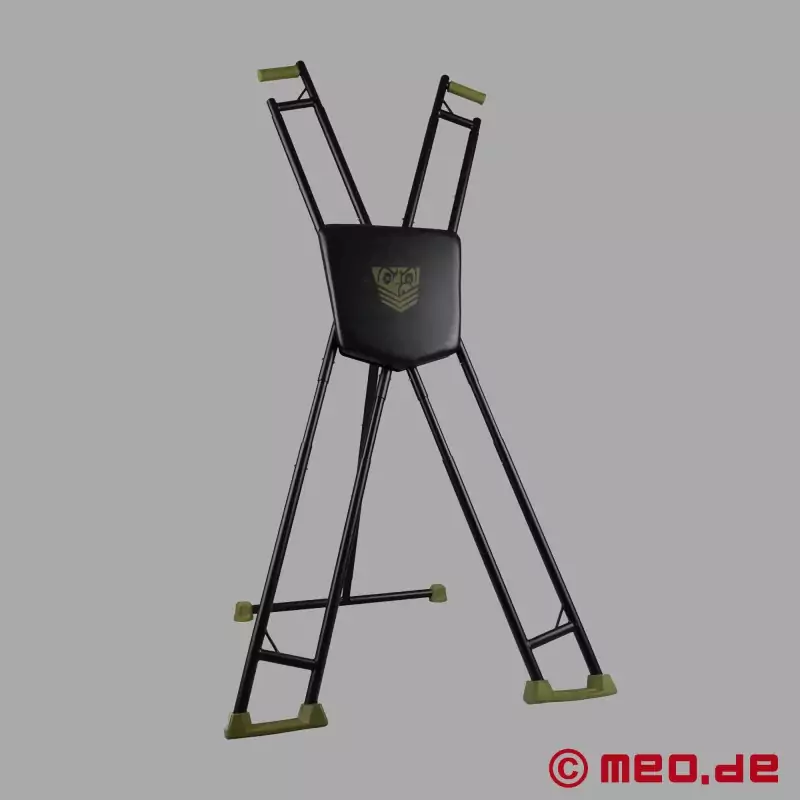La forma en X no solo es icónica, sino también funcional. Los brazos y las piernas de la cruz se pueden ajustar de forma independiente en varios niveles. De este modo, se consigue una posición que se adapta al cuerpo, al espacio y al tipo de sujeción deseado para la pareja. El marco metálico le confiere estabilidad, las bases antideslizantes aumentan la seguridad y el grueso acolchado central está pensado para sesiones más prolongadas.