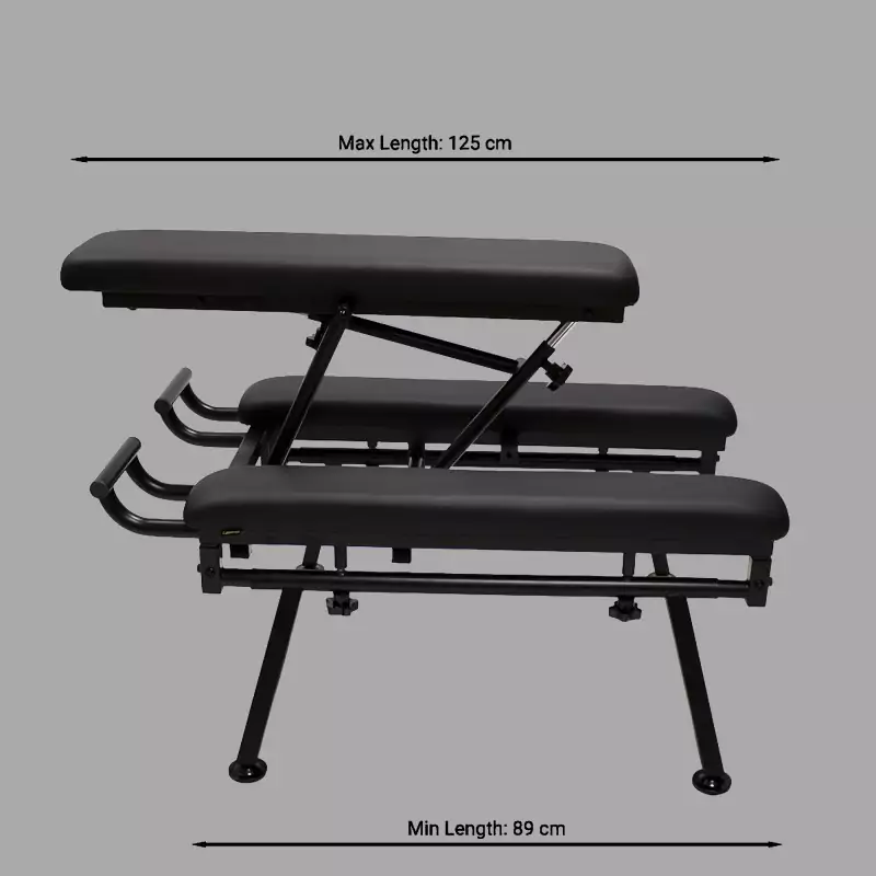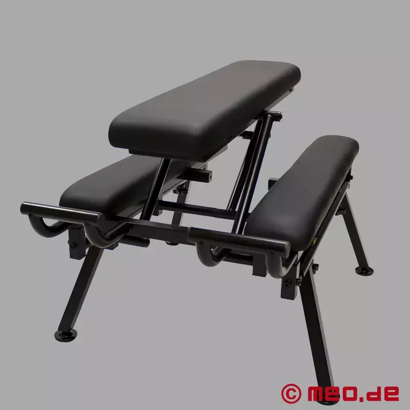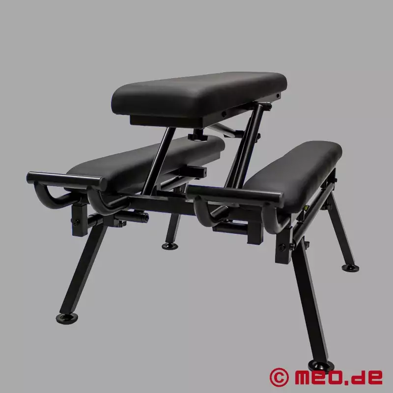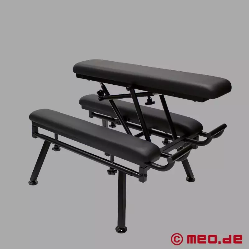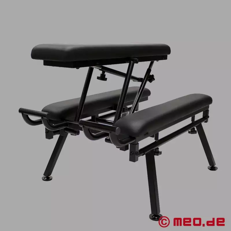 Cuando la posición correcta determina la intensidad, el ritmo y la resistencia, se necesita un mueble que se mantenga firme. El asiento central de la FuckBench™ se puede regular en altura, colocar en paralelo a los apoyos laterales o inclinar hacia arriba o hacia abajo. De este modo, se puede adoptar cómodamente la postura ideal según la práctica elegida (fisting, rimming, estilo perrito, etc.).