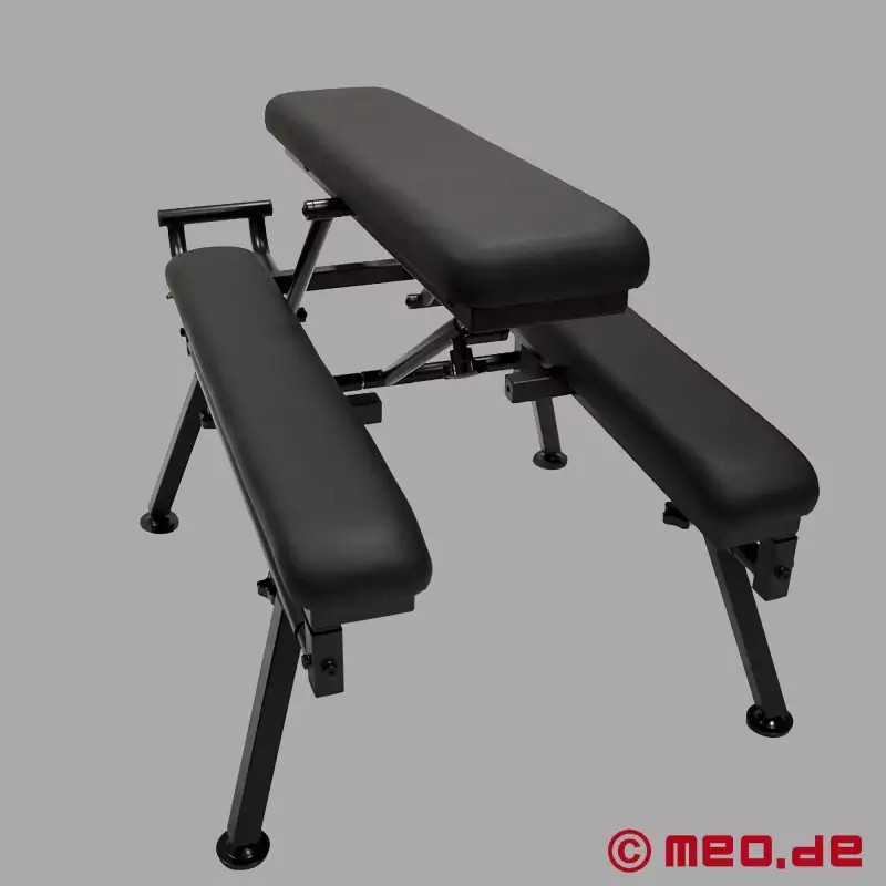 La FuckBench™ es un mueble BDSM profesional para sesiones privadas o profesionales. Sus tres superficies de apoyo generosamente acolchadas, sus asas integradas y su estructura robusta y estable garantizan solidez y comodidad, incluso durante las escenas más intensas.
