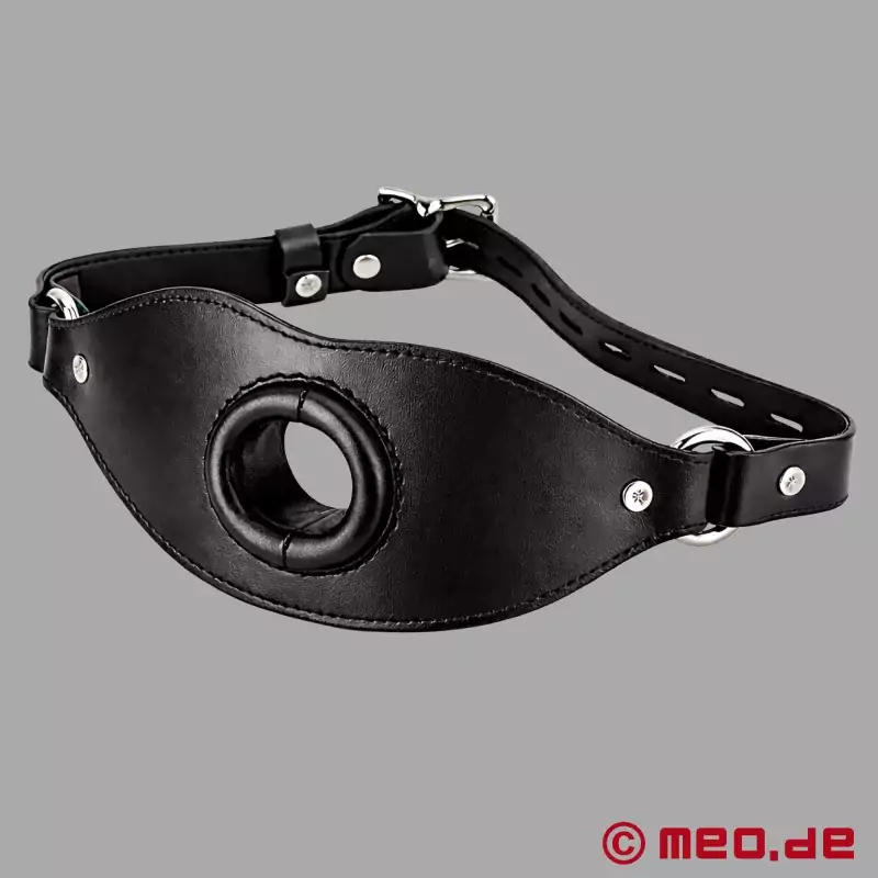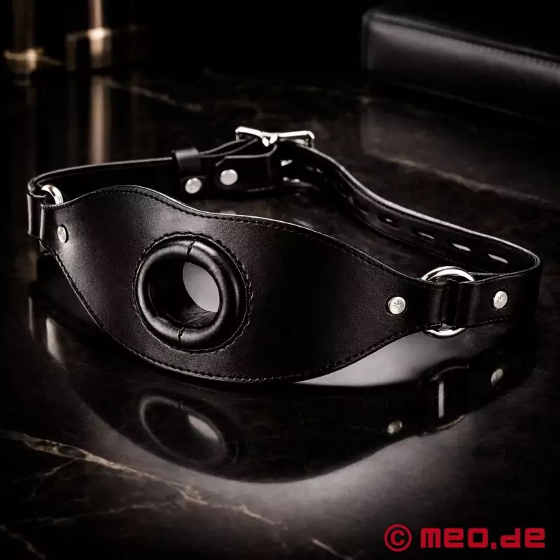 Para esclavos especialmente sumisos: Una mordaza con cierre, equipada con un tubo que se introduce en la boca y puede utilizarse de diversas formas. Con esta mordaza de MEO, también conocida como "Piss Gag", no hay límites ni siquiera para las fantasías más extremas.