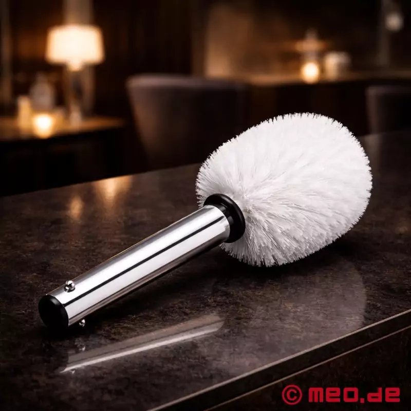 La escobilla de váter es sin duda el más conocido de todos los accesorios de mordaza "Humillador" y no necesita más explicación, salvo que forma parte del catálogo de castigos BDSM.