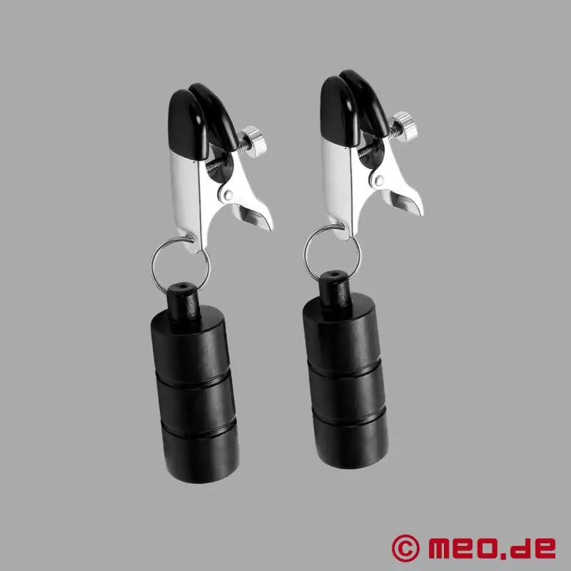 Las pinzas para pezones con pesas son una combinación especialmente excitante Nuestras pinzas para pezones ajustables con pesas llevan el juego erótico a un nivel completamente nuevo. Como vínculo entre el placer y el dolor, las pinzas para pezones aumentan el flujo sanguíneo y la sensibilidad de los pezones, permitiendo así una intensa experiencia sensual.