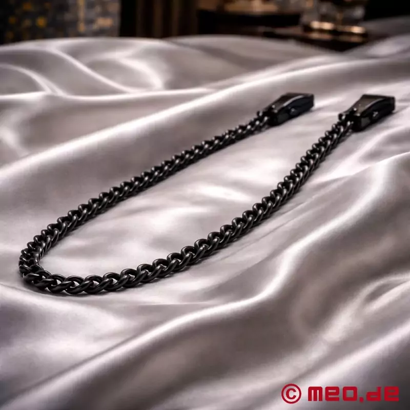 En un contexto BDSM, a menudo se trata de jugar con el poder y el control, así como de explorar el placer y el dolor. El uso de pinzas en los pezones puede crear un sentimiento de sumisión en los compañeros pasivos y, al mismo tiempo, dar a los dominantes una sensación de control. Añadir pesos o tirar de la cadena puede potenciar esta dinámica e introducir otro nivel de dominación y sumisión.