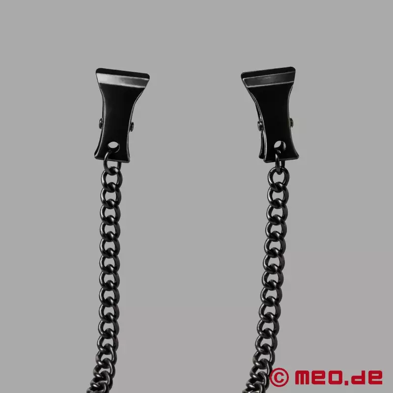 Estas pinzas para pezones de alta calidad son imprescindibles para los amantes de la estimulación intensa de los pezones, de suaves a duros. Fabricadas con una combinación de acero inoxidable y aluminio, estas pinzas para pezones no sólo ofrecen un aspecto estético en elegante color negro, sino también una calidad robusta y duradera.
