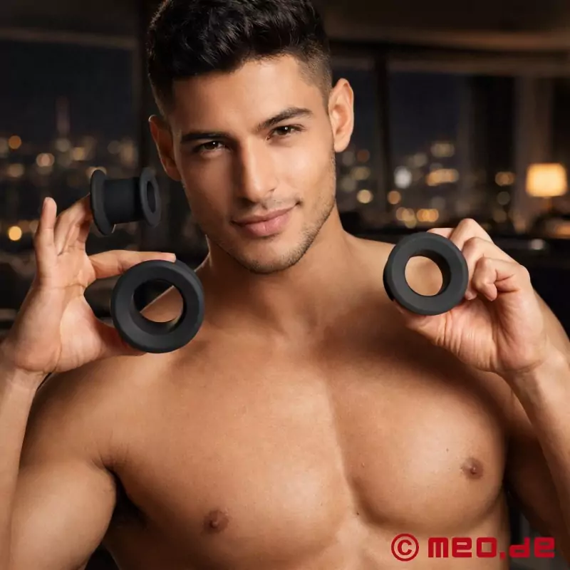 El buttplug FHT™ de MEO® es un plug anal con túnel que mantiene el ano bien abierto. El resultado es una apertura claramente visible, ideal para el estiramiento anal intenso, el entrenamiento anal progresivo y las sesiones BDSM para personas con experiencia, en las que la dilatación anal, el control corporal y una estética irresistible son el centro del juego.