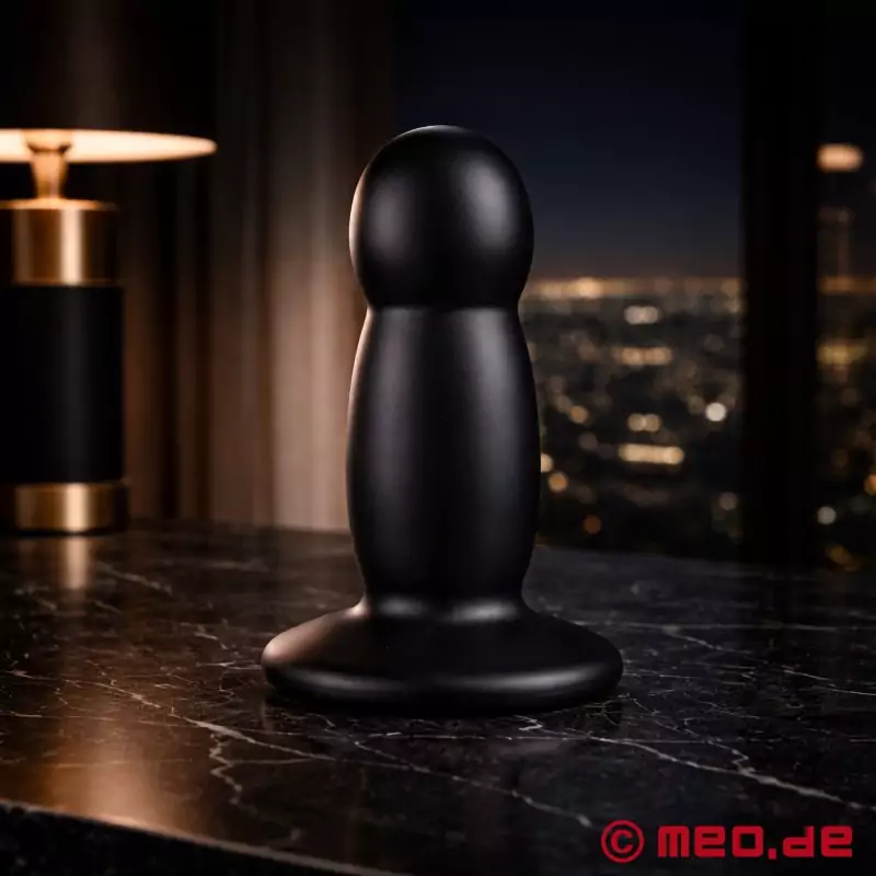 Este impresionante plug anal se caracteriza por su sólida estructura de doble bola. Las dos bolas tienen un diámetro de 8 cm cada una y la zona entre las bolas tiene un diámetro de 6 cm. Esta forma ondulada alterna entre la dilatación anal y la relajación anal, haciendo que el estiramiento del ano sea progresivo y muy intenso. El plug anal termina en una base ancha y estable de 14 cm de diámetro, que proporciona seguridad y evita la penetración excesiva.