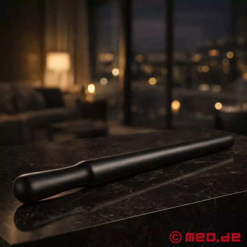 Gracias a su forma alargada, la porra de goma se sujeta con seguridad en la mano y se puede guiar de forma controlada. La superficie lisa y la correa de muñeca integrada subrayan su carácter funcional. Así nace un accesorio BDSM deliberadamente sobrio que, precisamente por ello, despliega un efecto especialmente claro.