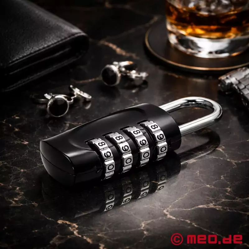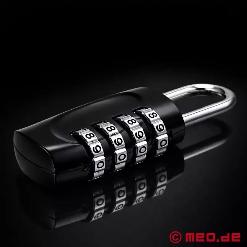 El candado de combinación de 4 dígitos de MEO está fabricado con zinc extremadamente resistente y es pequeño y manejable, con unas dimensiones de 30 x 67 x 14 mm, y es perfecto para el Self Bondage gracias a sus 10.000 variantes de código.
