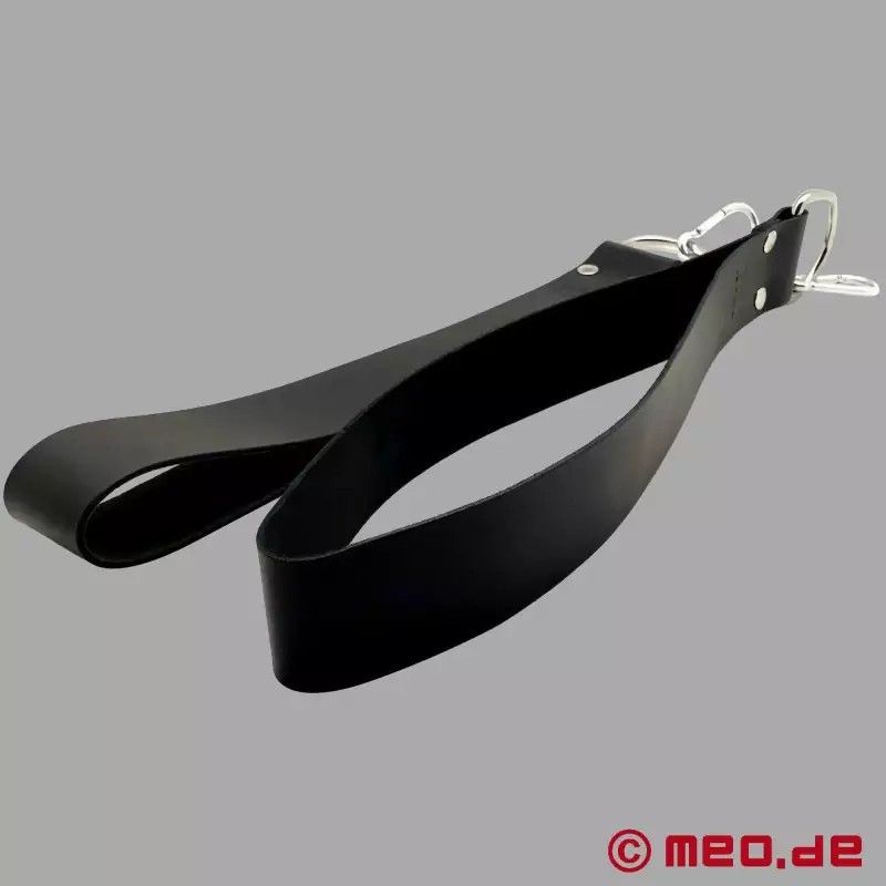 Son especialmente adecuadas para prácticas como el fisting o el sexo muy duro Las correas para los pies son, con diferencia, el accesorio más popular para un columpio. Nuestras correas para los pies están hechas de piel de vaca y son extremadamente resistentes. Son perfectas para nuestros arneses de cuero, colchonetas para arneses y tablas para arneses. Las correas de pie están remachadas dos veces y pueden soportar grandes cargas. Las anillas en D integradas te permiten fijar las perneras a las cadenas de sujeción de un columpio mediante mosquetones.