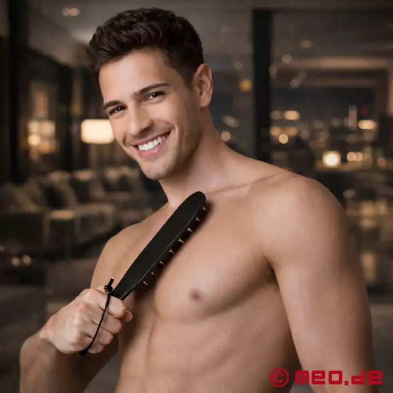 Precisamente esta combinación es lo que hace tan especial a PointedPound™. La superficie lisa permite impactos más amplios y definidos, mientras que el lado con remaches genera una estimulación más focalizada y marcada. De este modo, la intensidad puede regularse de forma muy consciente y adaptarse al ambiente, la dinámica y la experiencia. Esta dualidad convierte a este paddle en una herramienta excepcionalmente versátil para distintos escenarios BDSM.